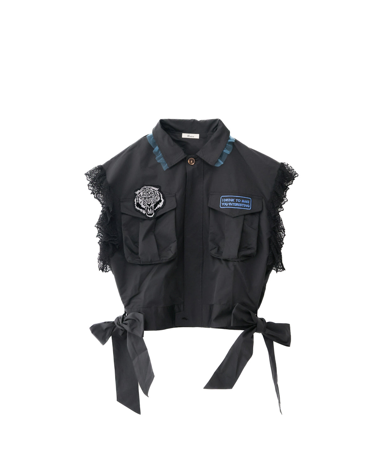 ミリタリーレースリボンベスト(ブラック) リメイク