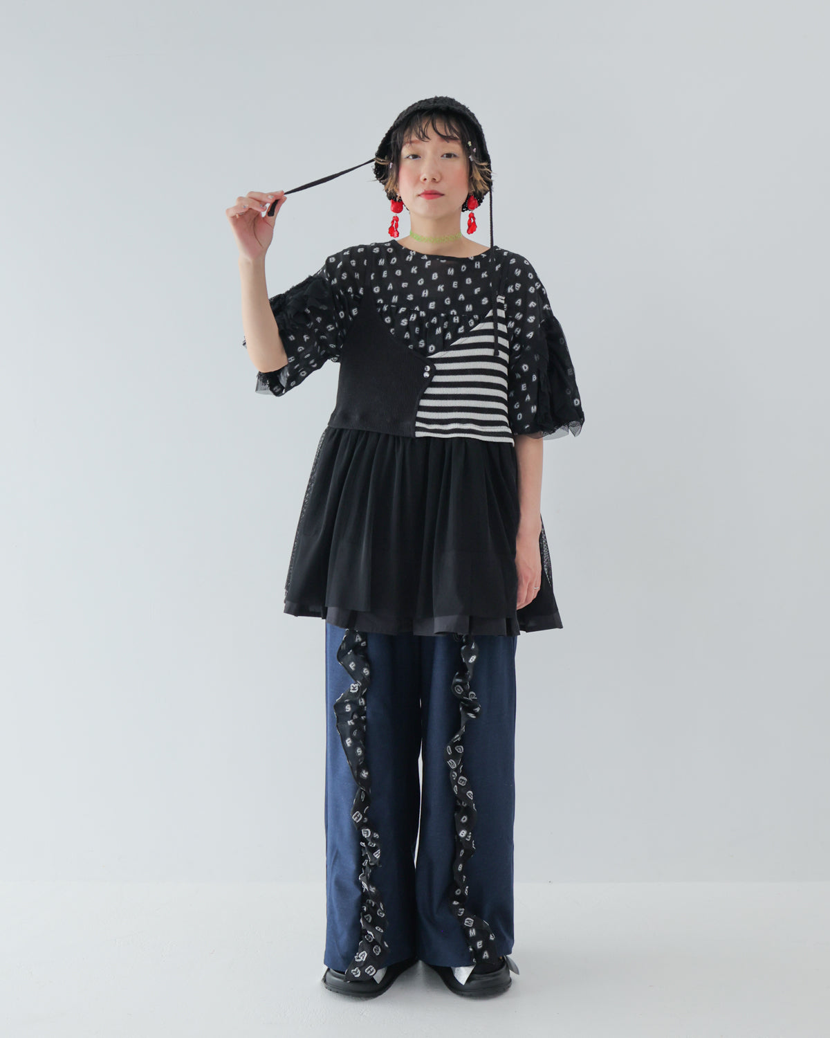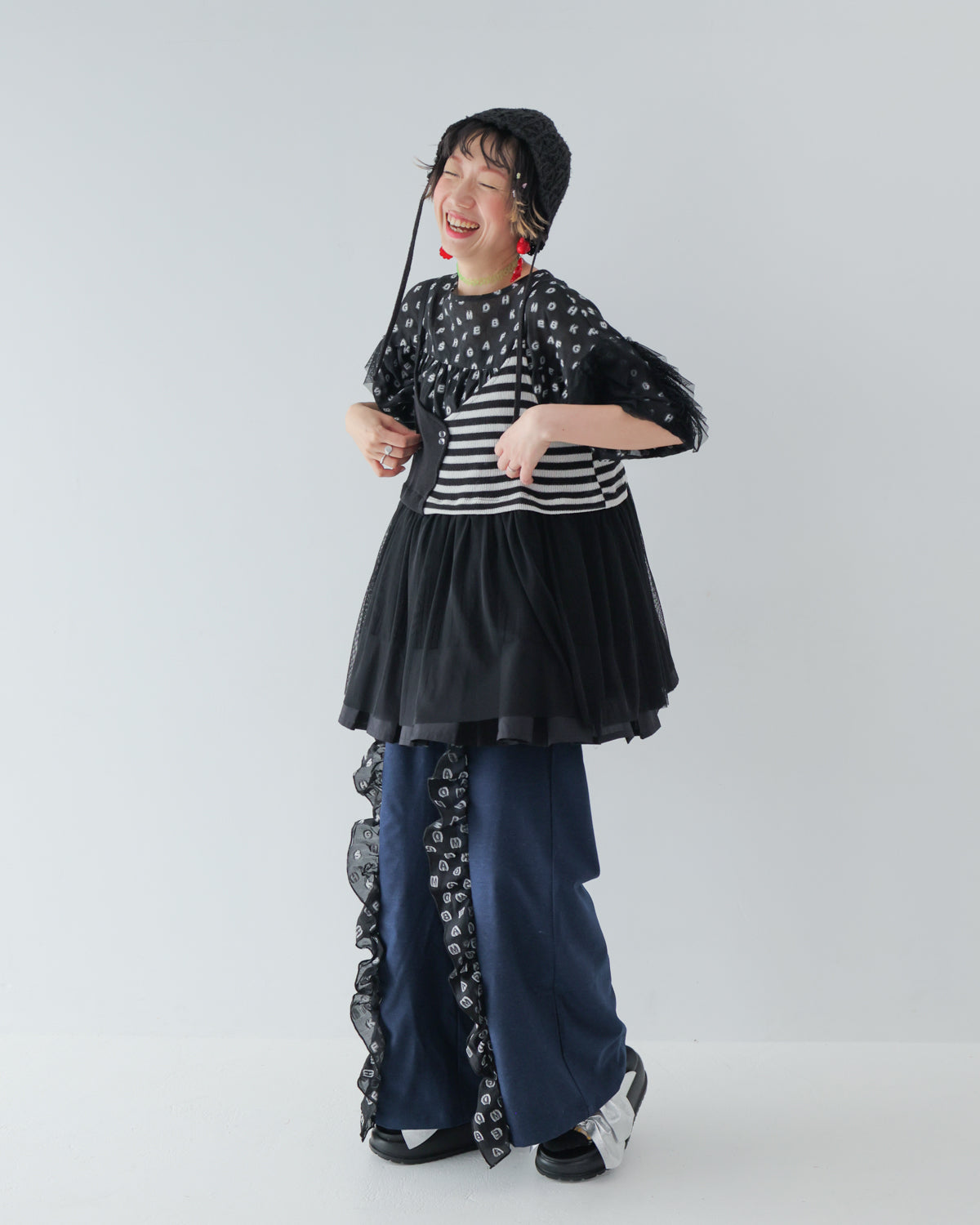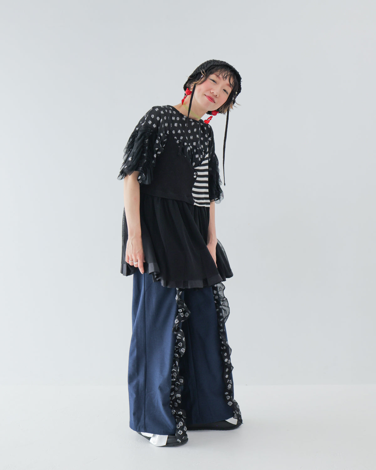 シンプルコーデに重ねるだけでおしゃれ感が増すビスチェを、モード感漂うモノトーンで展開!