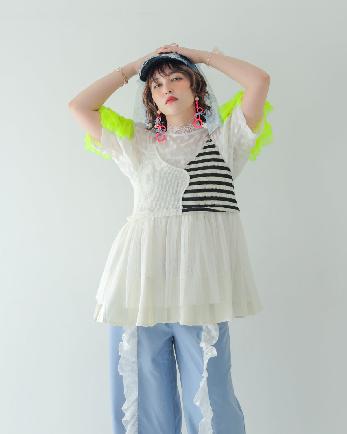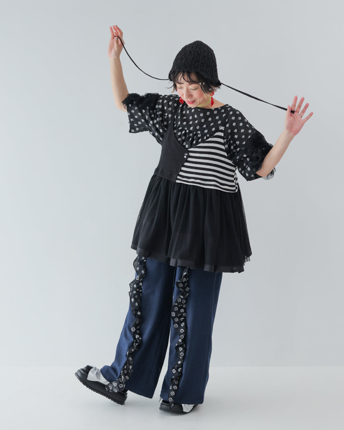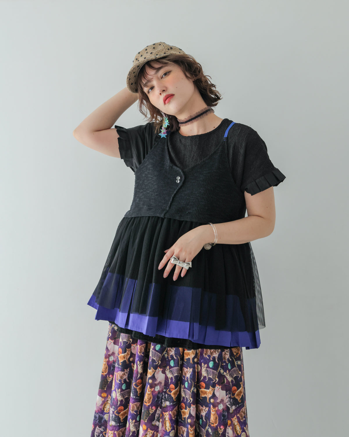 シンプルコーデに重ねるだけでおしゃれ感が増すビスチェを、モード感漂うモノトーンで展開!