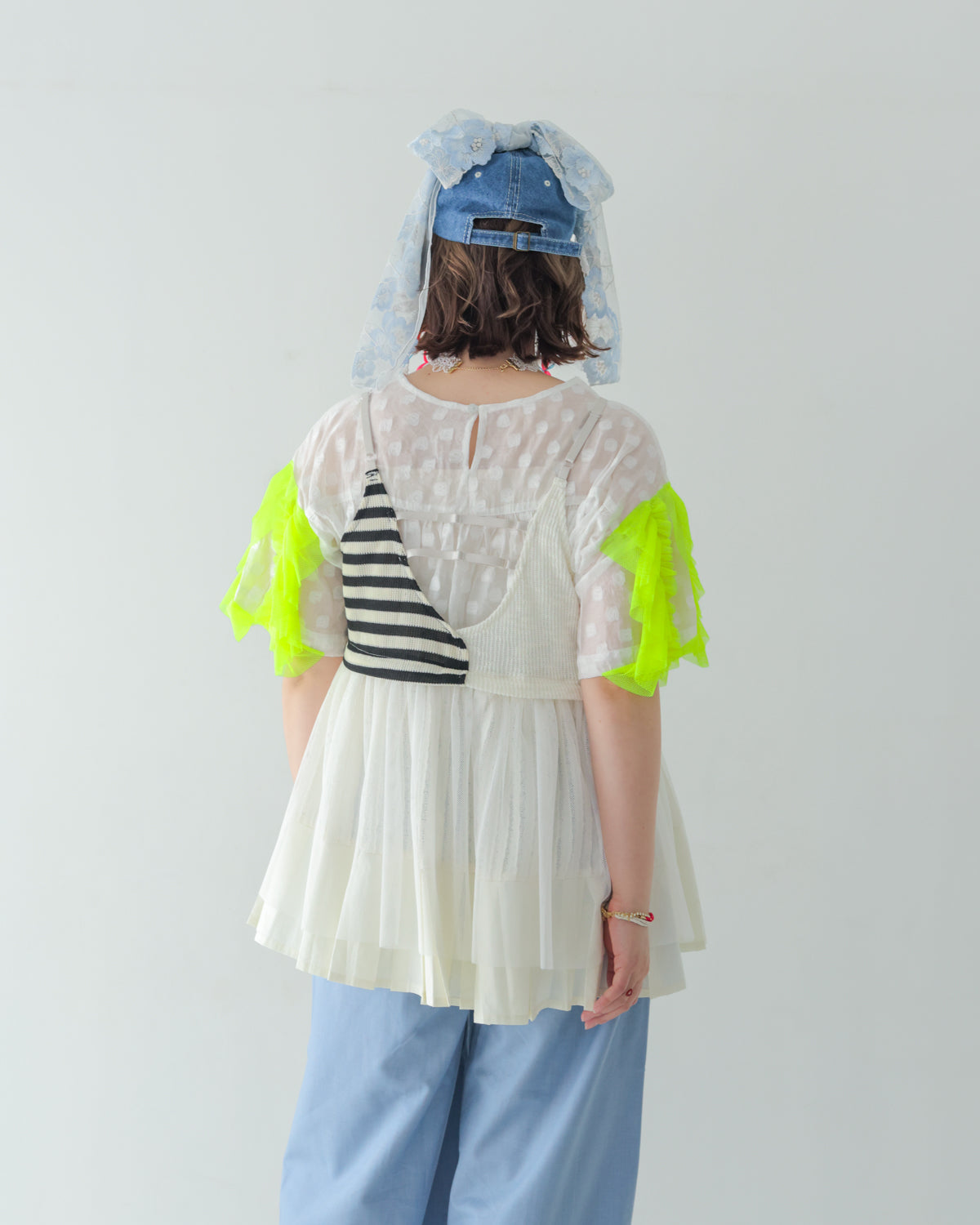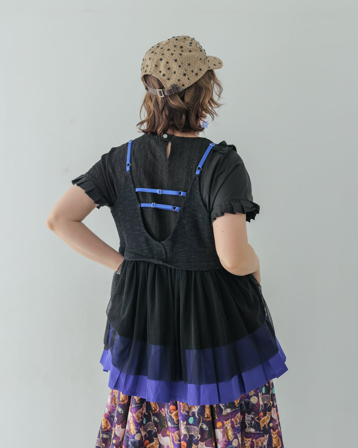 胸元から裾にかけてはメッシュやレース生地を使用したふわりと広がるAラインシルエットで、お腹周りも優しくカバー。肩と背中のストラップは調節可能のため、体型を選ばず着用いただけます。