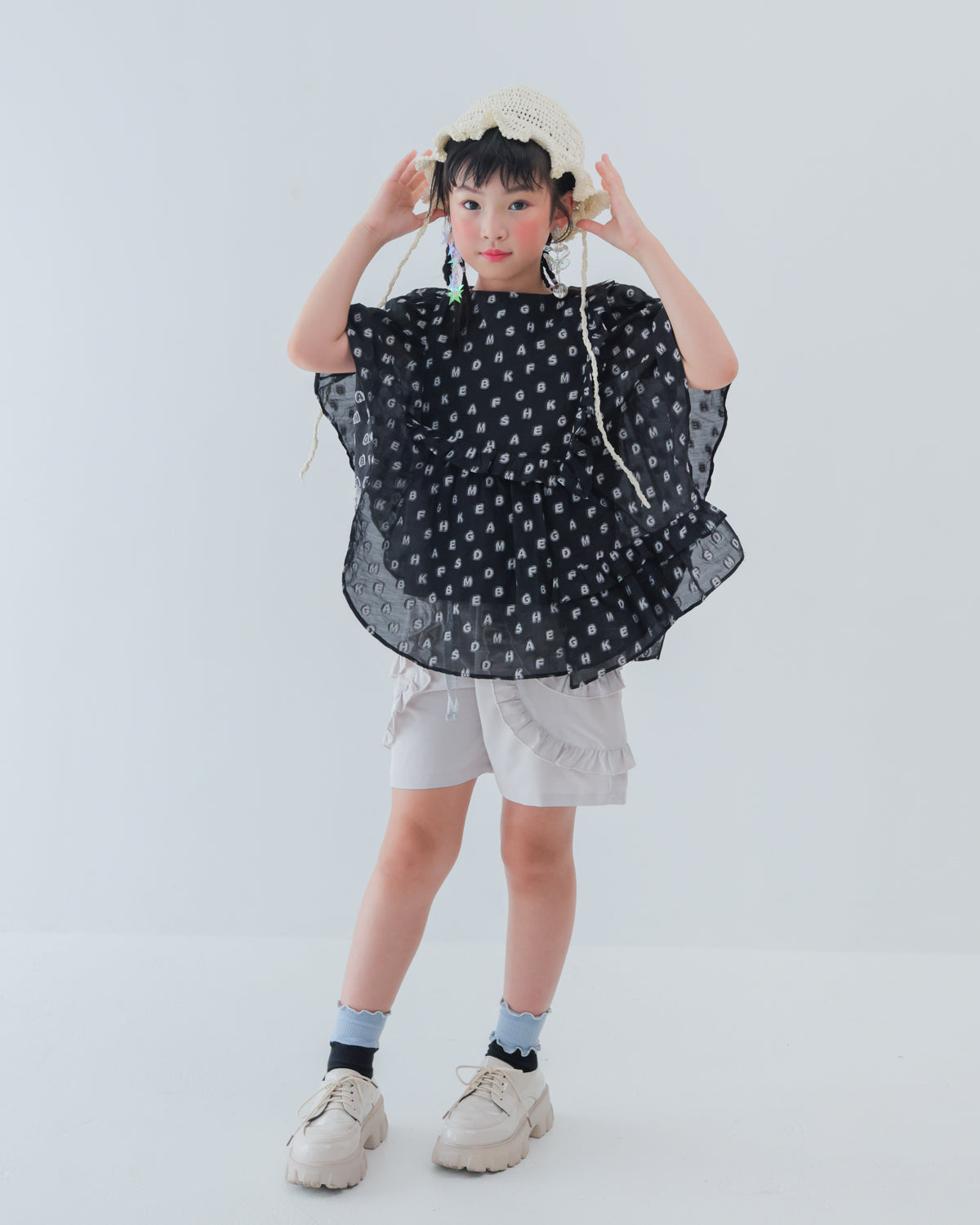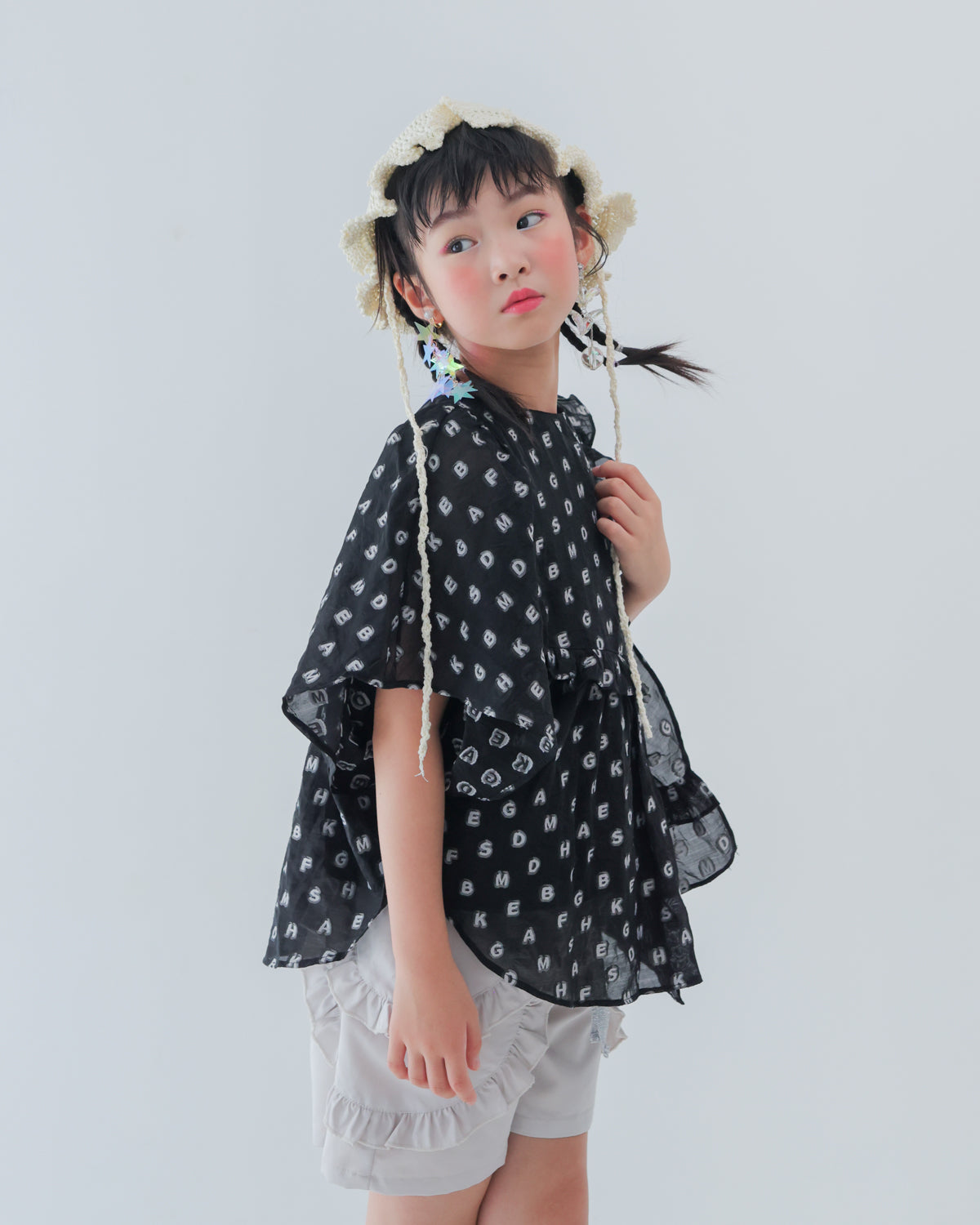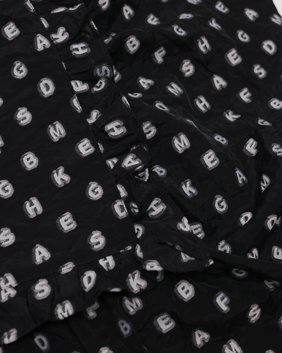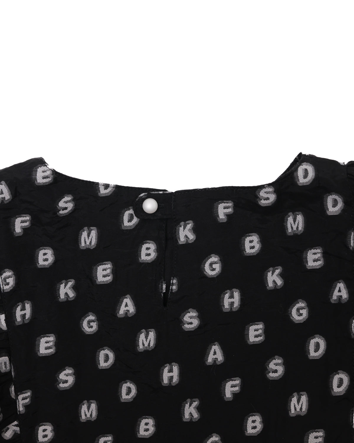 アルファベットが散りばめられた個性的なオーガンジー生地をたっぷりと使用した、フェミニン×カジュアルなブラウスです。