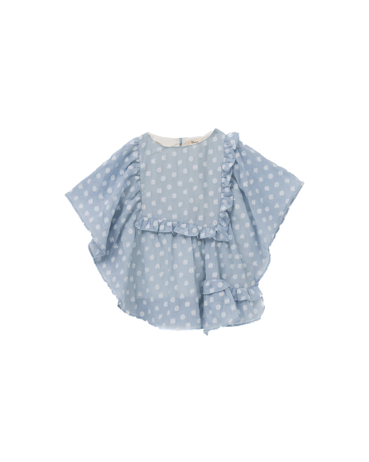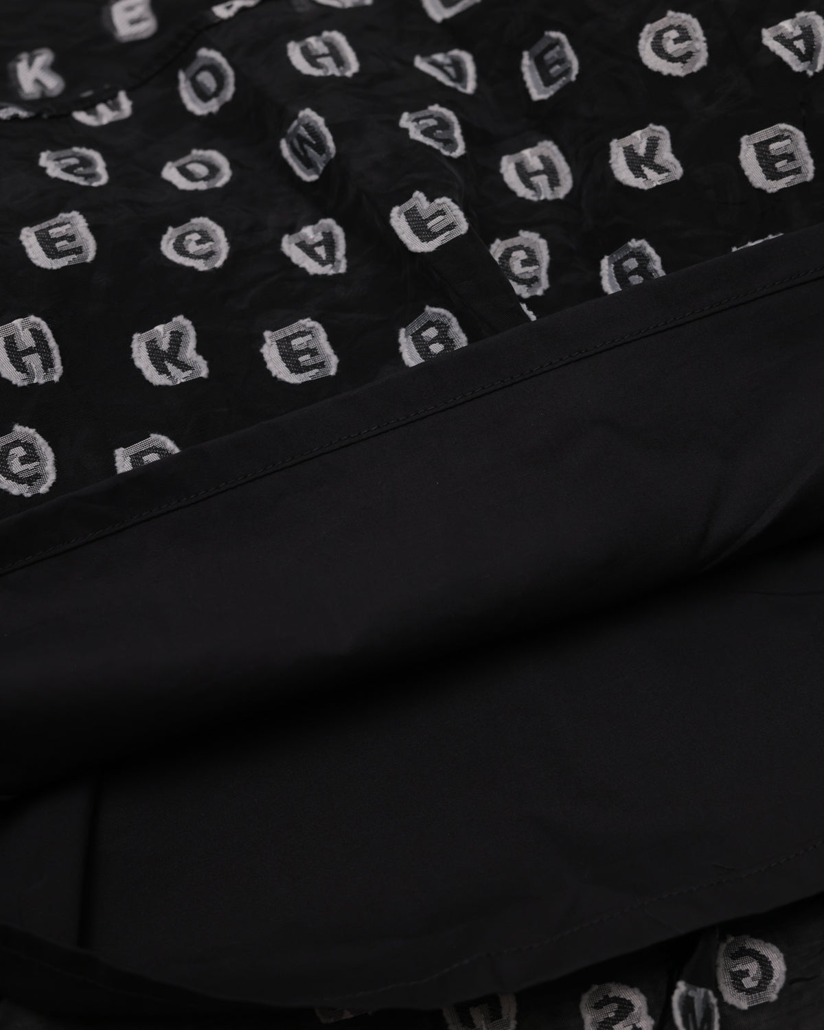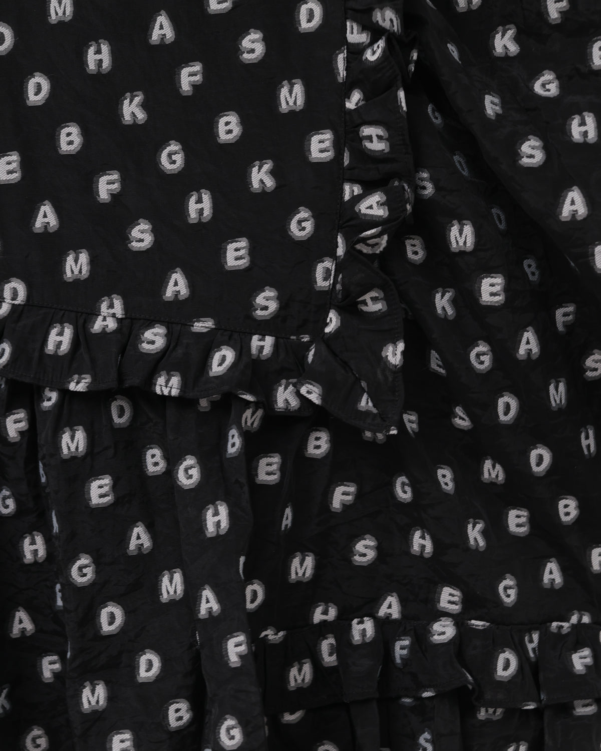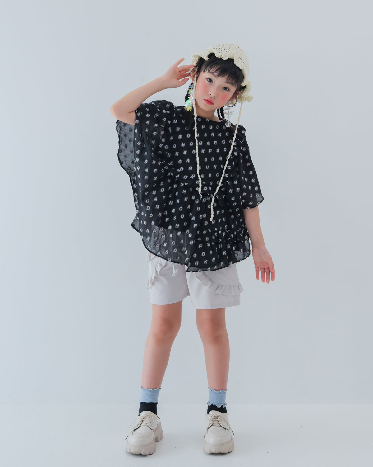 アルファベットが散りばめられた個性的なオーガンジー生地をたっぷりと使用した、フェミニン×カジュアルなブラウスです。