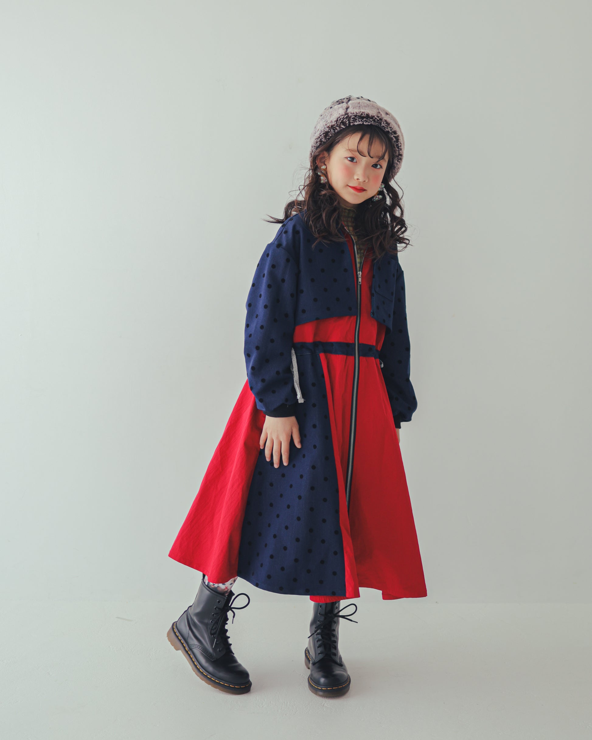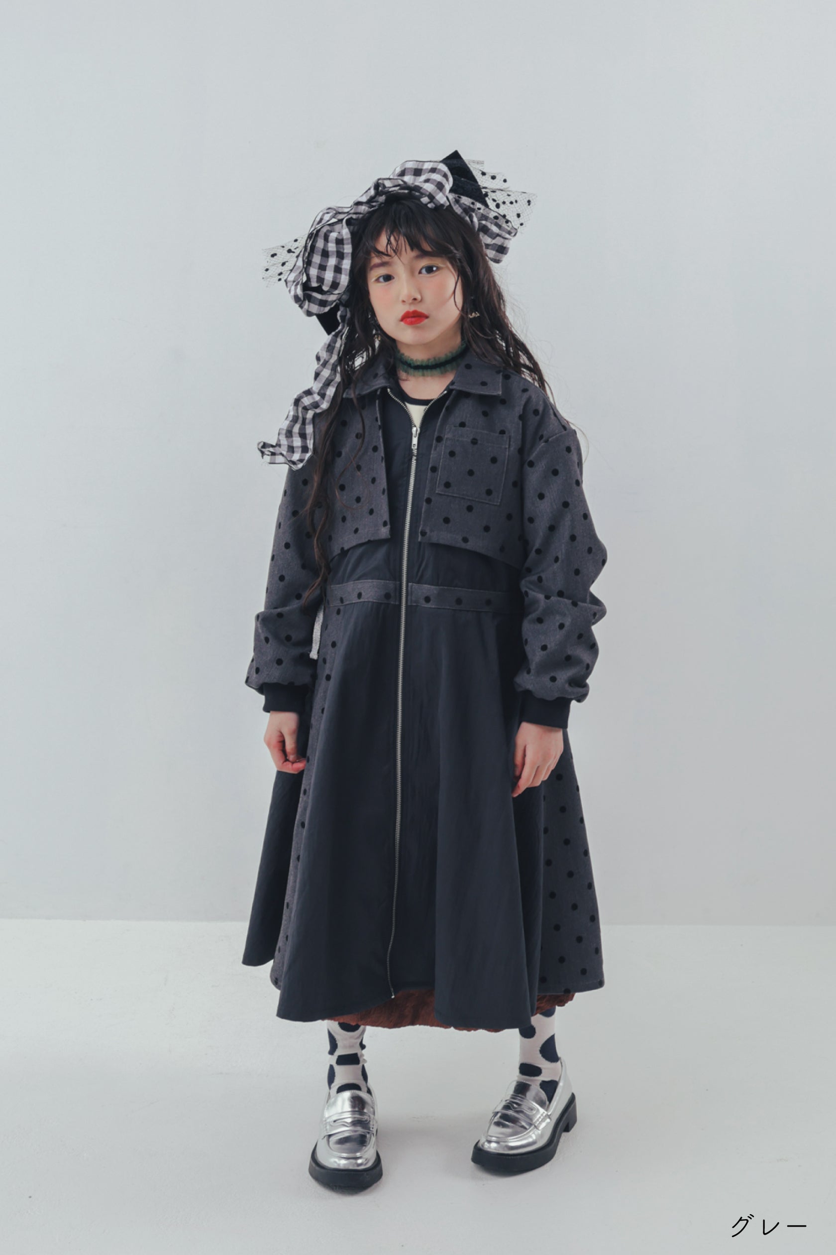フロッキードットzipperジャケットワンピース [352-0102-1]