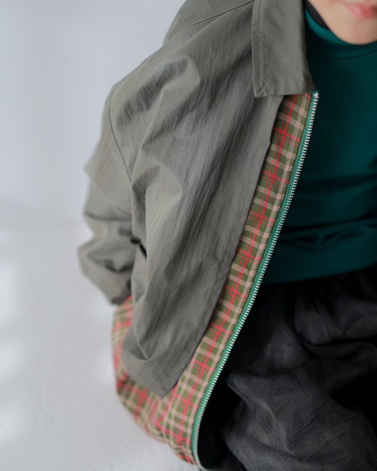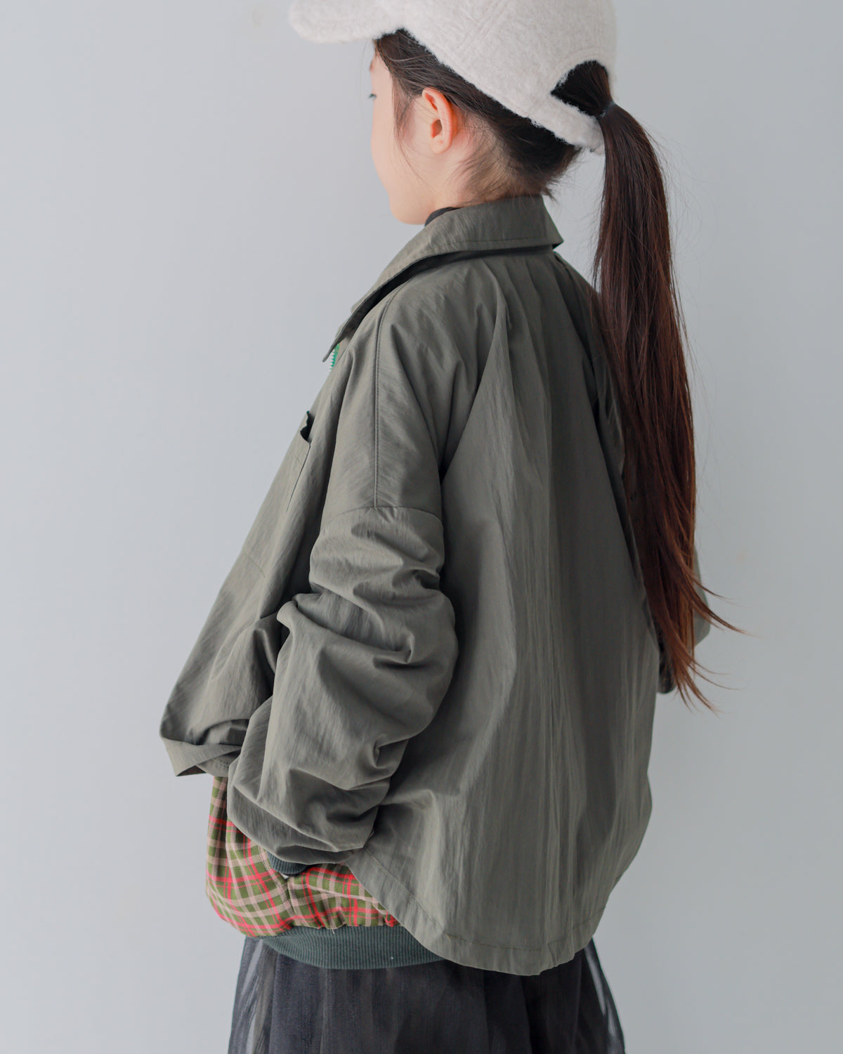 両胸の大きなフラップが特徴的なジャケットは、マニッシュなコーディネイトにも使いやすいカーキとブラックの2色をご用意。チラリと覗くチェックは、パキッとしたブラック×イエローと柔らかなカーキ×ピンク。 スカートともパンツとも相性の良い、バランスの取りやすい丈感です。