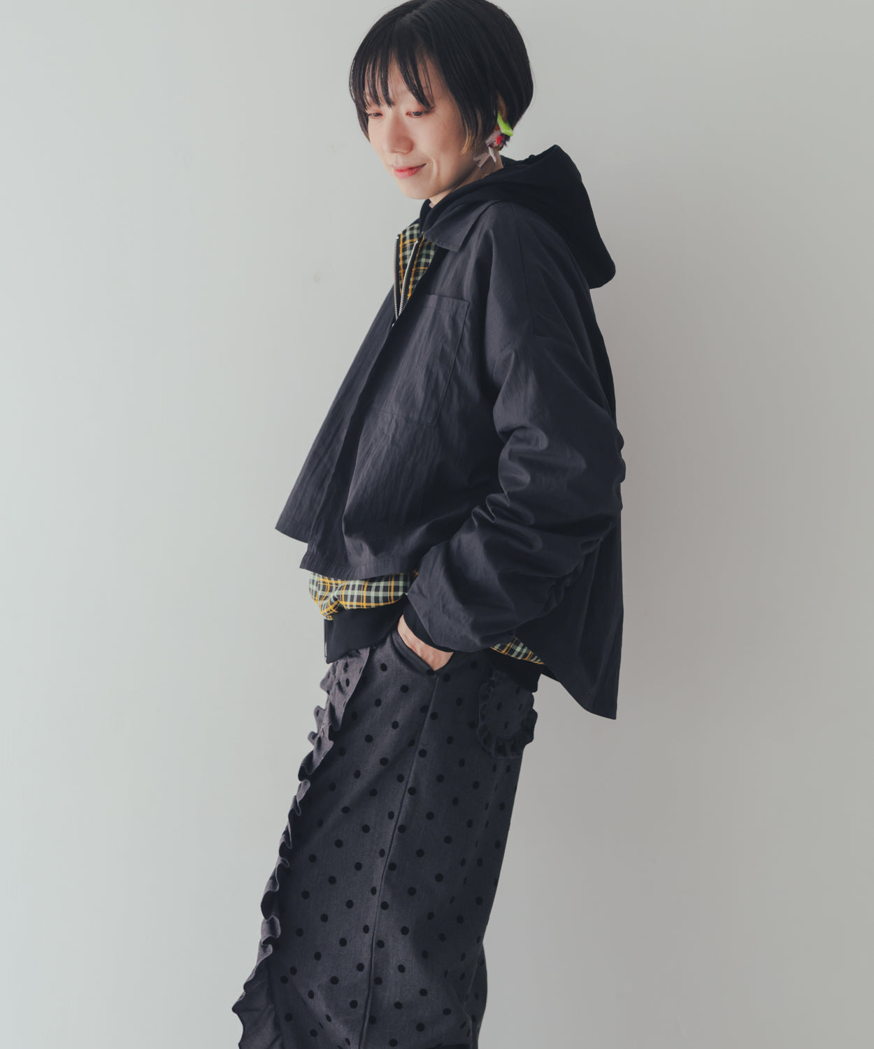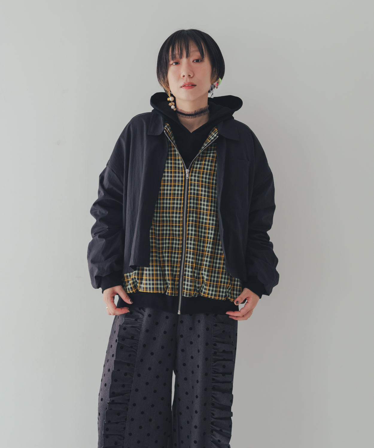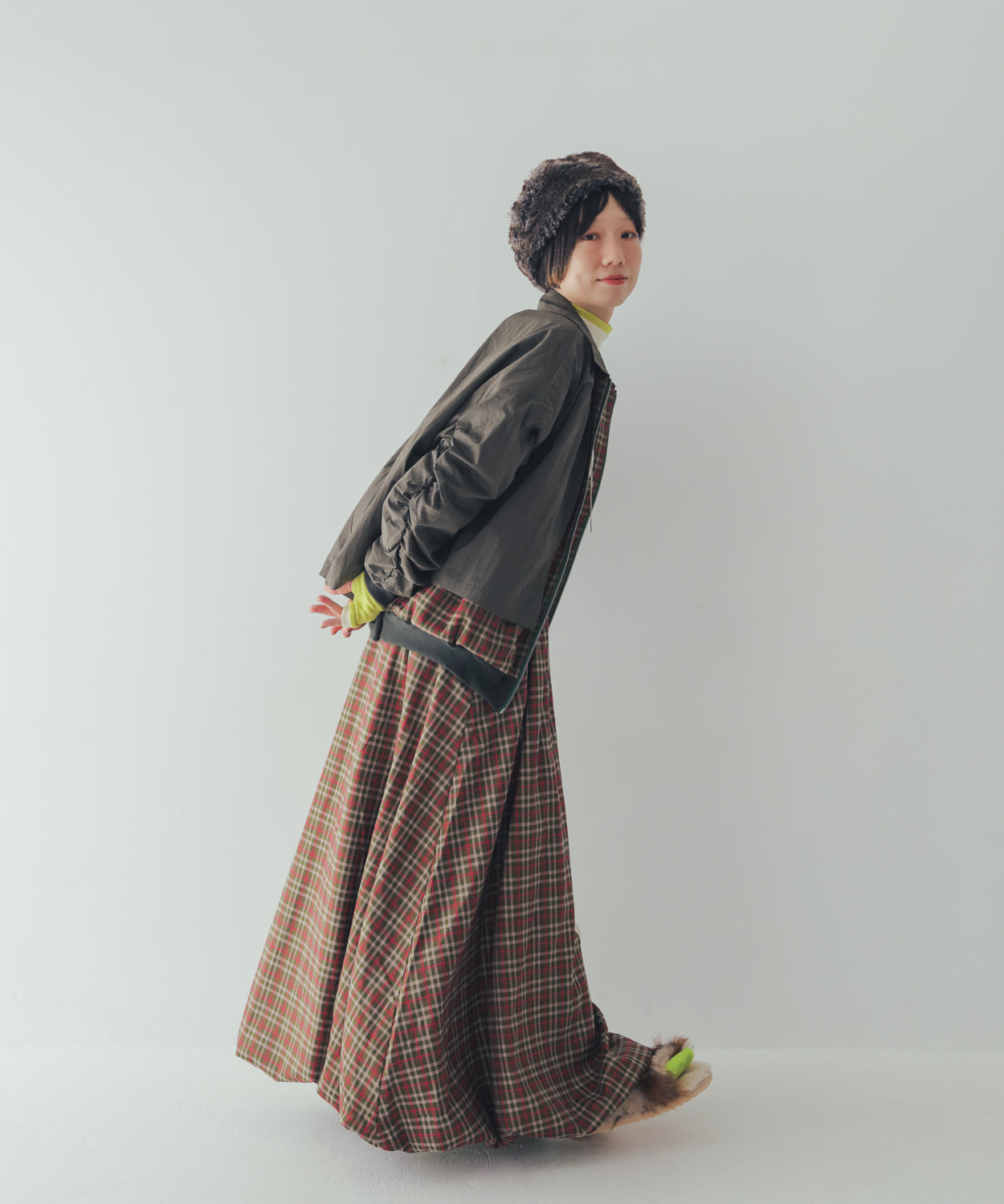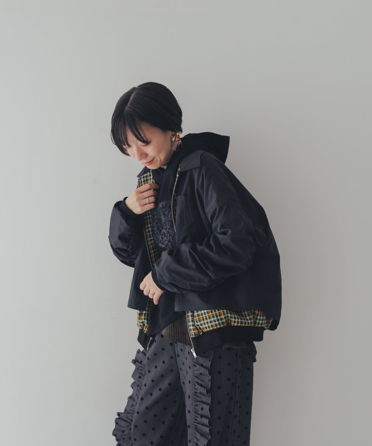 両胸の大きなフラップが特徴的なジャケットは、マニッシュなコーディネイトにも使いやすいカーキとブラックの2色をご用意。チラリと覗くチェックは、パキッとしたブラック×イエローと柔らかなカーキ×ピンク。 スカートともパンツとも相性の良い、バランスの取りやすい丈感です。