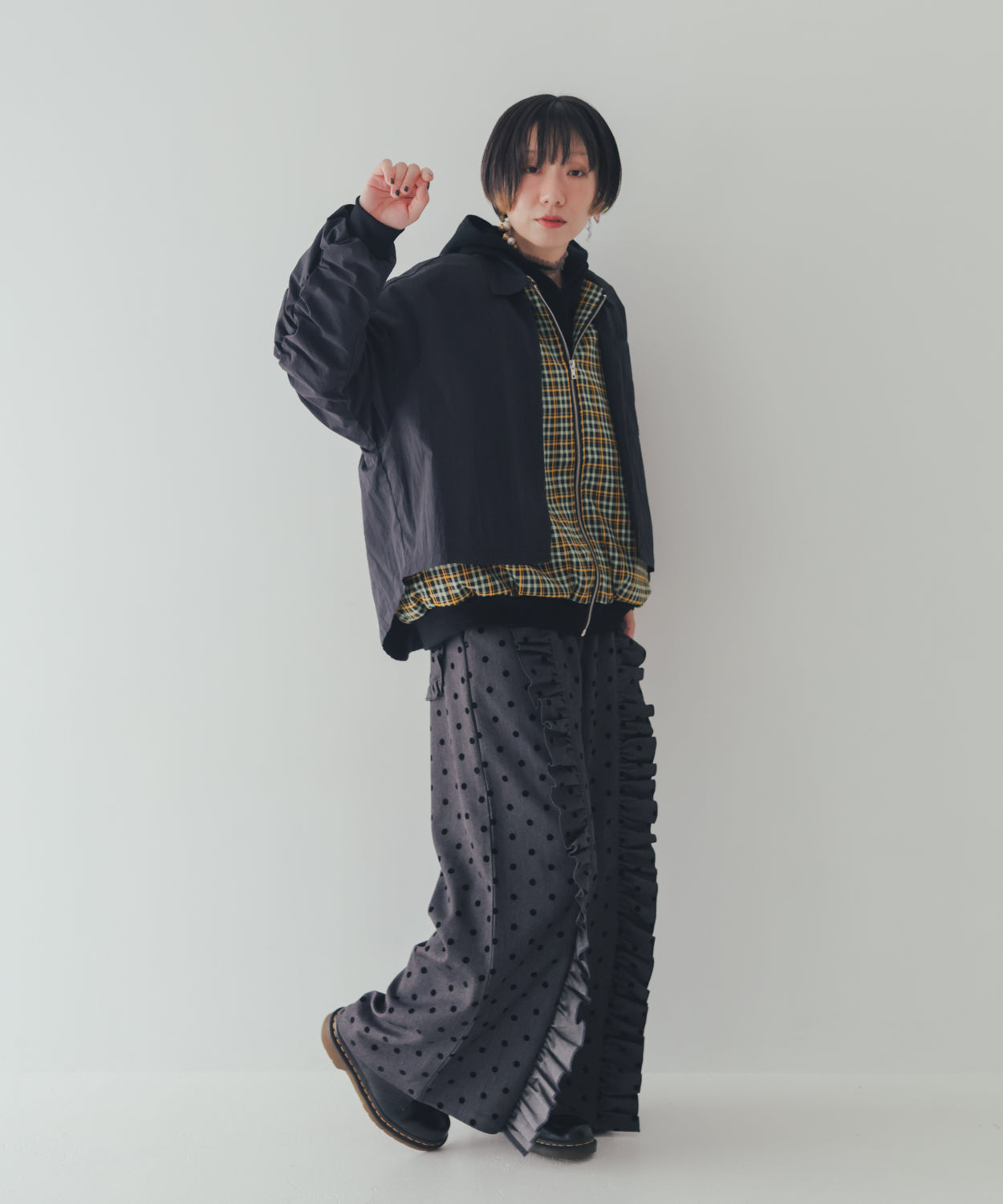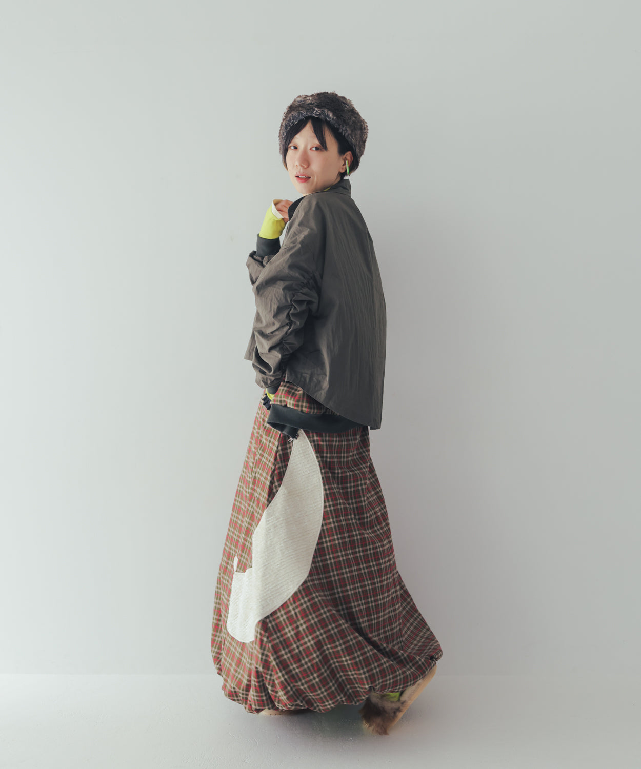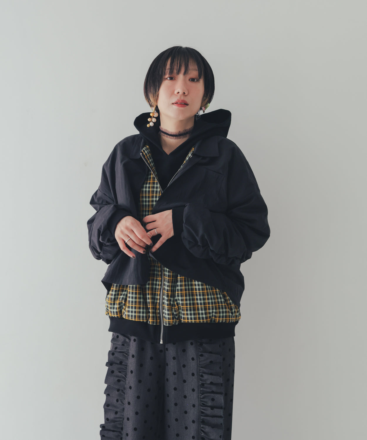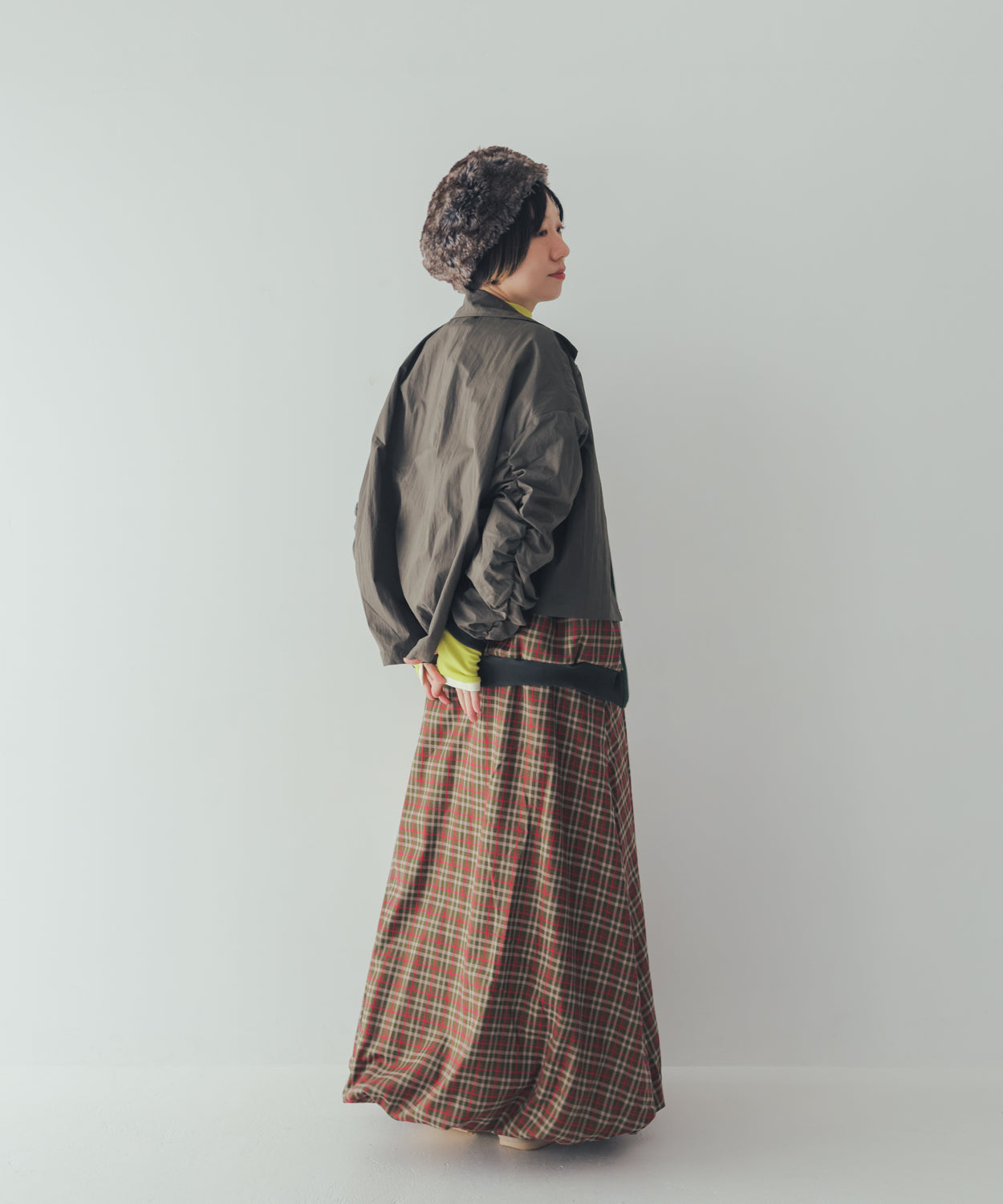 両胸の大きなフラップが特徴的なジャケットは、マニッシュなコーディネイトにも使いやすいカーキとブラックの2色をご用意。チラリと覗くチェックは、パキッとしたブラック×イエローと柔らかなカーキ×ピンク。 スカートともパンツとも相性の良い、バランスの取りやすい丈感です。