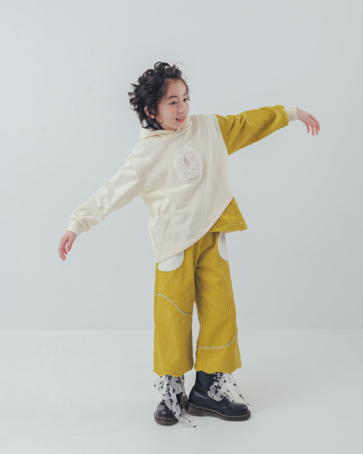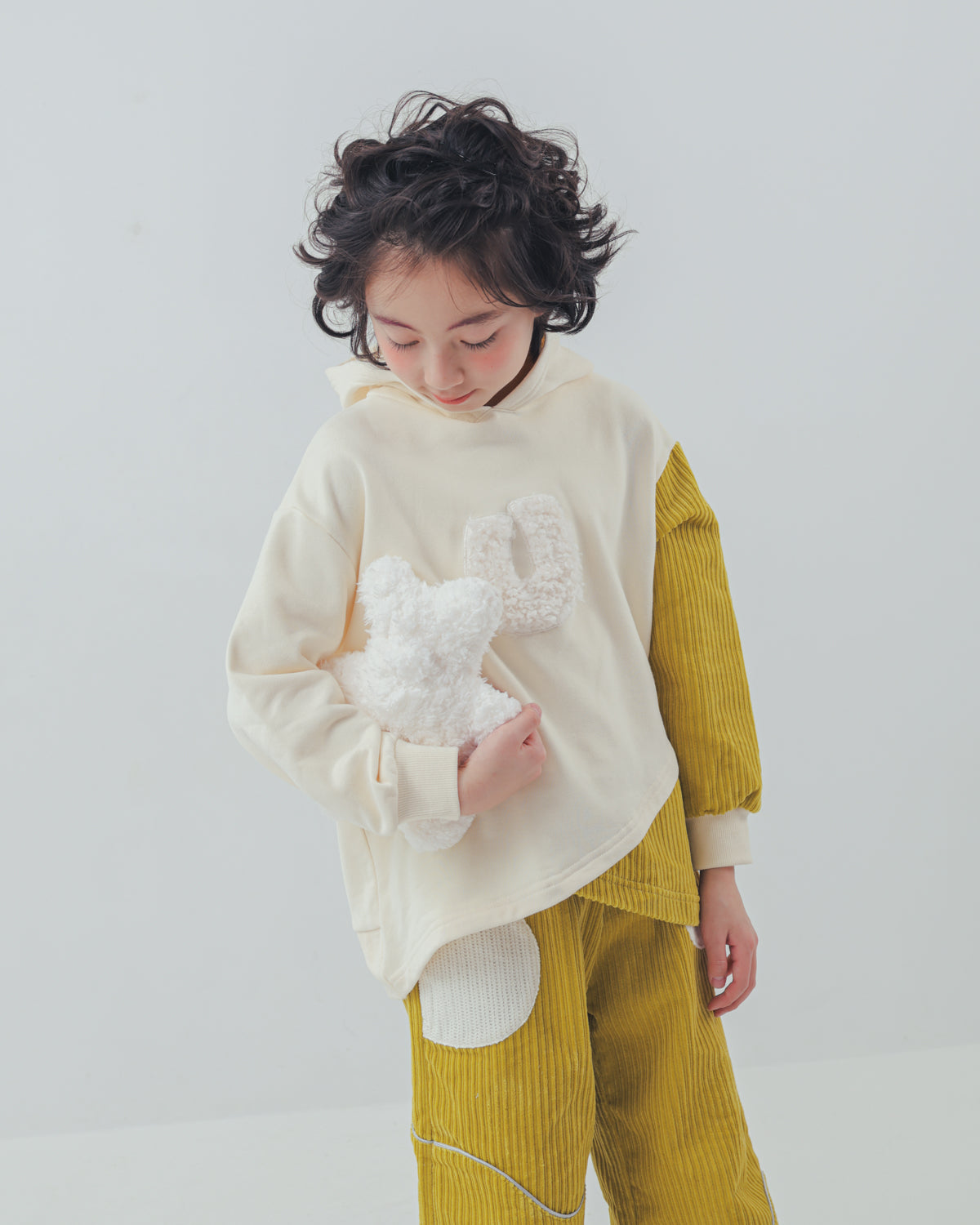 胸元の『U』のアップリケがポップな印象のフーディーです。袖や裾の一部にはコーデュロイ生地を使用。異素材&異なるカラーを配することで、スタンダードなアイテムにもunicaらしいこだわりを詰めました。すっきりとしたシルエットのため、カジュアルに寄り過ぎないのもポイントです。