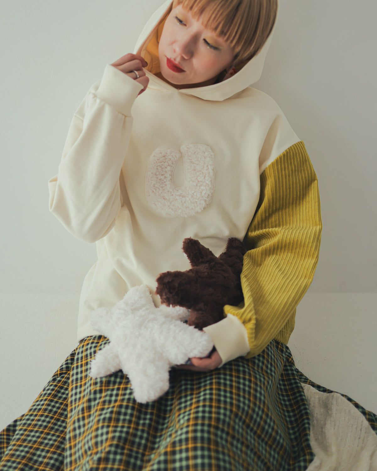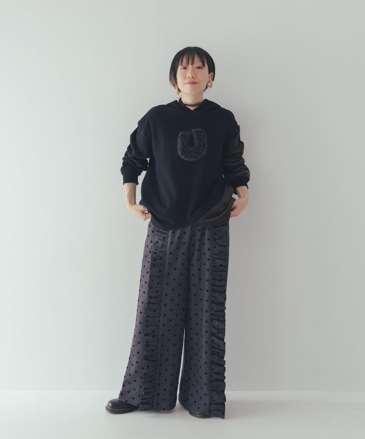 胸元の『U』のアップリケがポップな印象のフーディーです。袖や裾の一部にはコーデュロイ生地を使用。異素材&異なるカラーを配することで、スタンダードなアイテムにもunicaらしいこだわりを詰めました。すっきりとしたシルエットのため、カジュアルに寄り過ぎないのもポイントです。