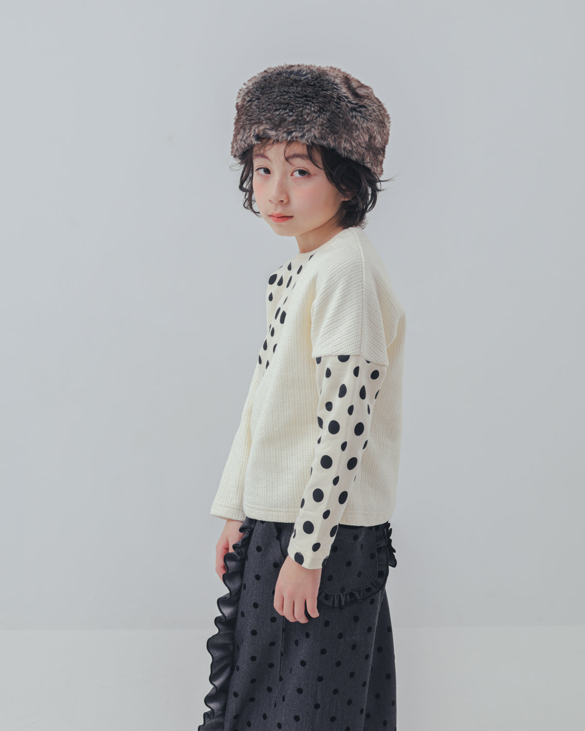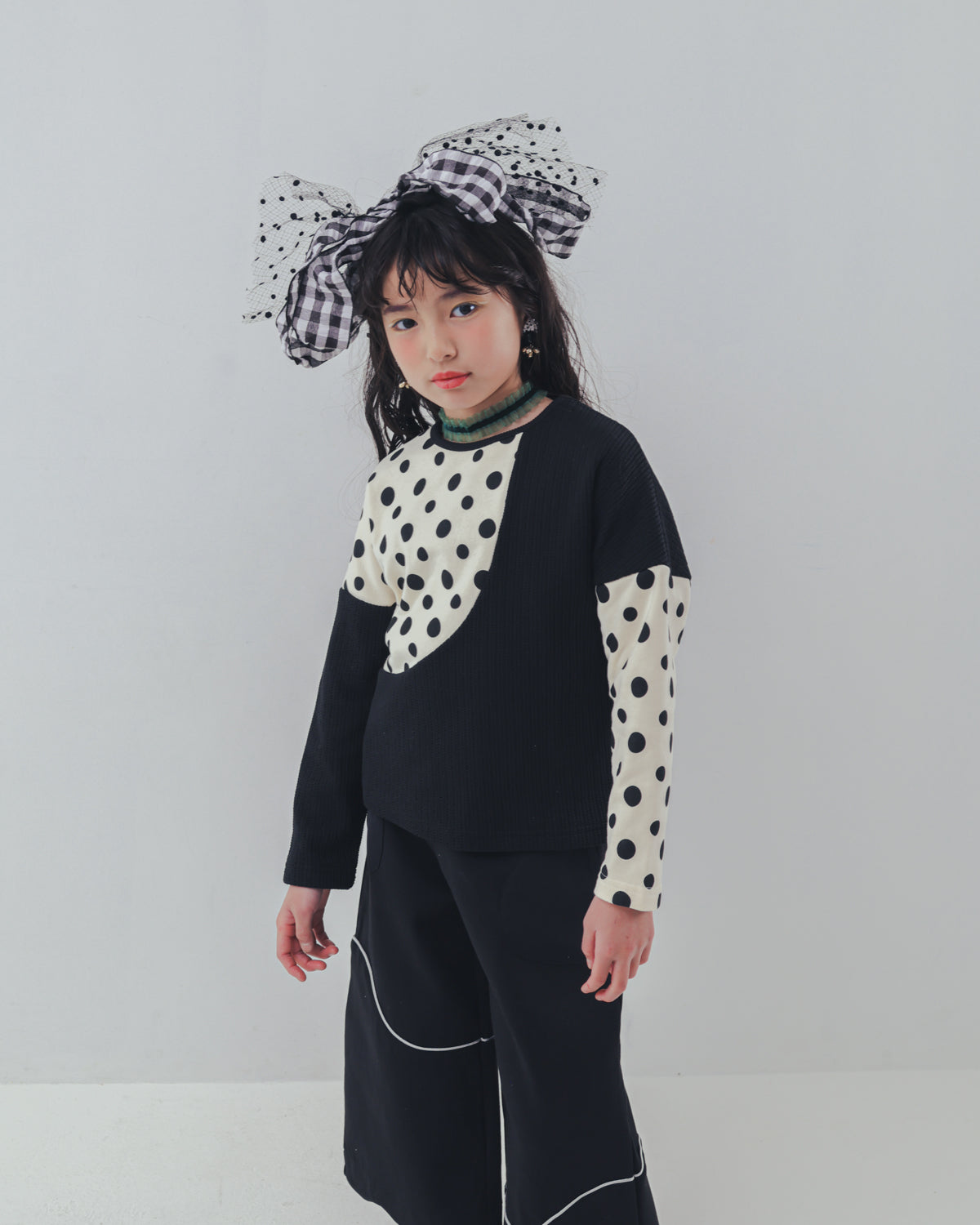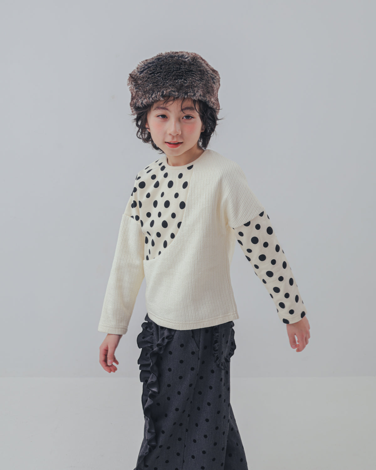 着回しの利くカットソーは、肩や腕まわりがゆるやかなドロップショルダー仕様。ポップで可愛い印象のドット柄も、モノトーンにすることで幼くなり過ぎない印象に。秋冬らしい柔らかなニット生地が、アクティブな日常に寄り添います。