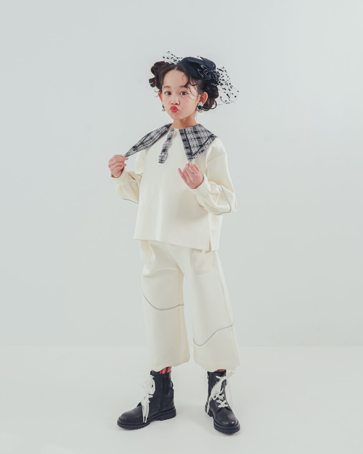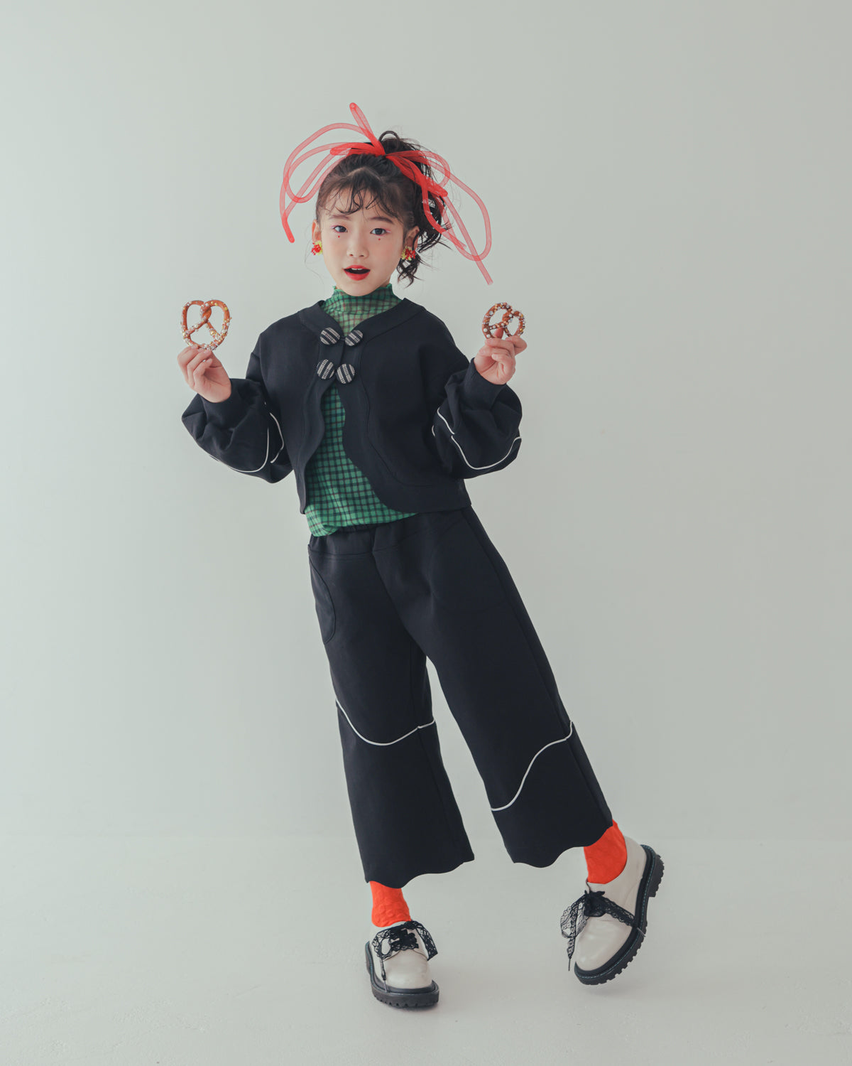 リラックス感漂うパンツは、オフとブラックでモードな雰囲気に。 ストレートシルエットに波のようなラインを組み合わせることで、動きのあるデザインに仕上げました。 ふわふわと軽いボンディング素材を使用しているためシワになりにくく、アクティブなスタイルにも寄り添います。