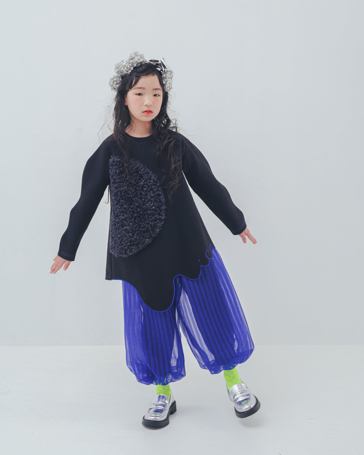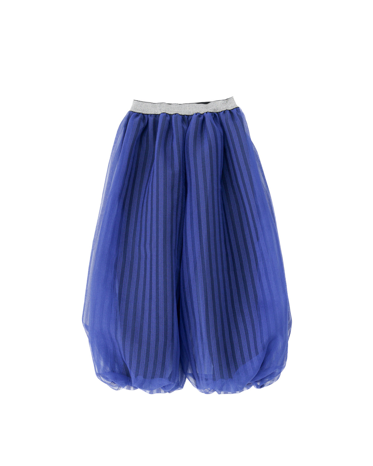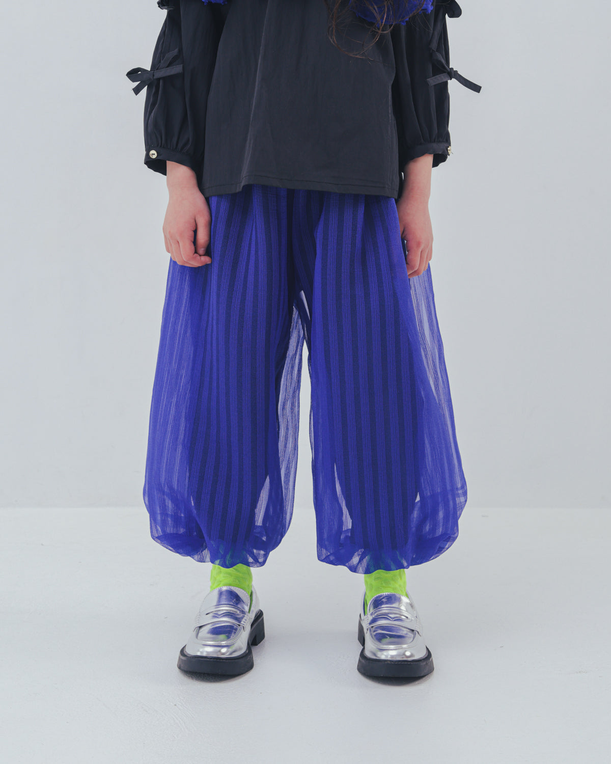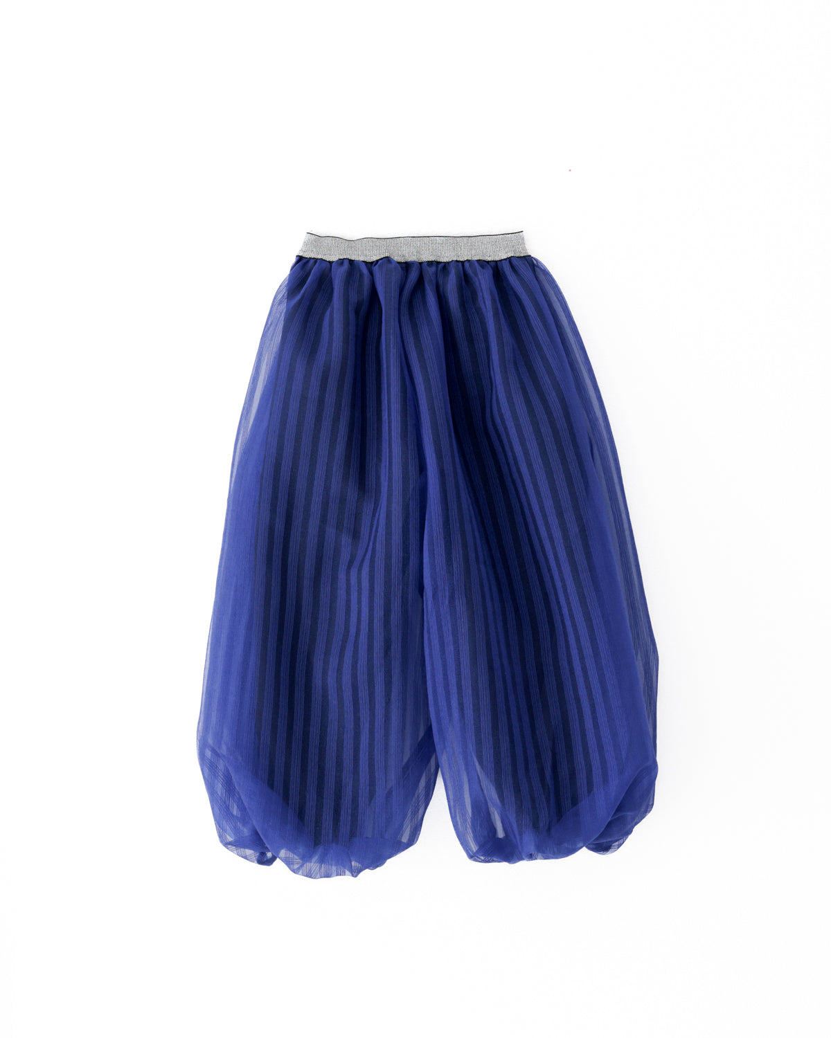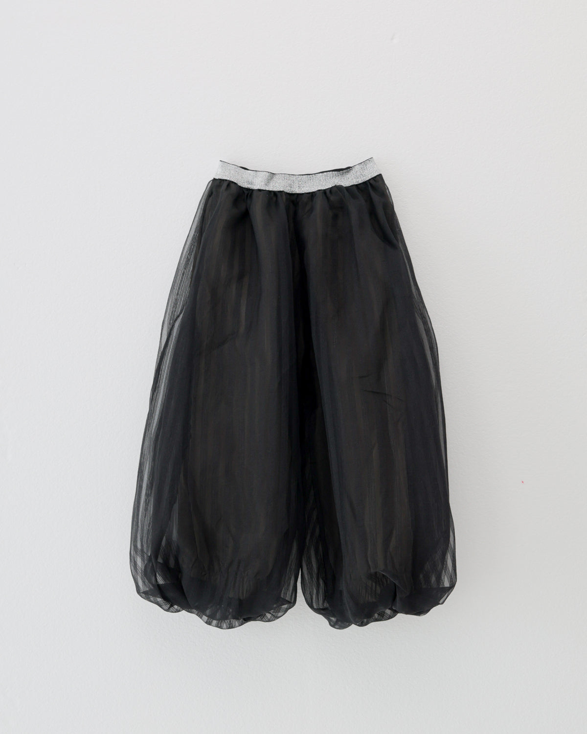 リラックス感たっぷりのバルーンパンツにもunicaらしさをプラス。 シアー感のあるストライプ生地を重ねることで、ふわふわとしたボリュームと立体感を加えました。トップスをインしてウエストのシルバーラインを効かせたり、大きめのトップスでラフにゆるっと着てみたりと、遊び甲斐のある一着です。